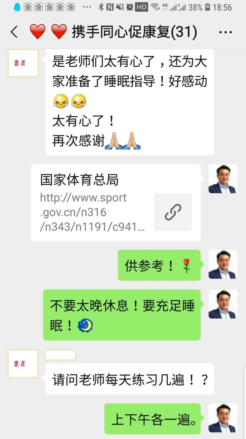 为了把中西医结合康复训练方法更好用于上海市新冠肺炎患者,同时不影响对新冠肺炎患者的一线诊治工作,康复团队建立了微信群,由上海市公共卫生临床中心的医生向患者提供微信群纸质二维码,五十多位轻型新冠肺炎患者手机扫码入群。患者入群后,康复团队提供健身气功养肺方的训练视频和文字讲解,并做一般性呼吸训练和运动指导、健康咨询。康复团队还通过放松疗法、音乐治疗、正念冥想、情感宣泄等多种方式,缓解患者的焦虑、恐慌情绪,营造轻松快乐的氛围。同时,团队通过简单的电子问卷,了解患者在健身气功养肺方训练及其他干预后的咳嗽、呼吸困难、胸闷、情绪、食欲和睡眠障碍等的缓解情况,以判断各种康复指导的安全性、有效性,以及时修正完善。康复团队的十几位成员,每天从早晨7点到夜里12点,一直通过微信平台陪伴、指导和鼓励着远在金山区上海市公共卫生临床中心的几十位新冠肺炎患者们。在训练健身气功养肺方后,群里的新冠肺炎患者们纷纷表示,“呼吸顺畅多了”“感觉睡眠明显改善!浑身变得更轻了,咳嗽症状也有所缓解!”“练完后浑身筋骨舒适”……