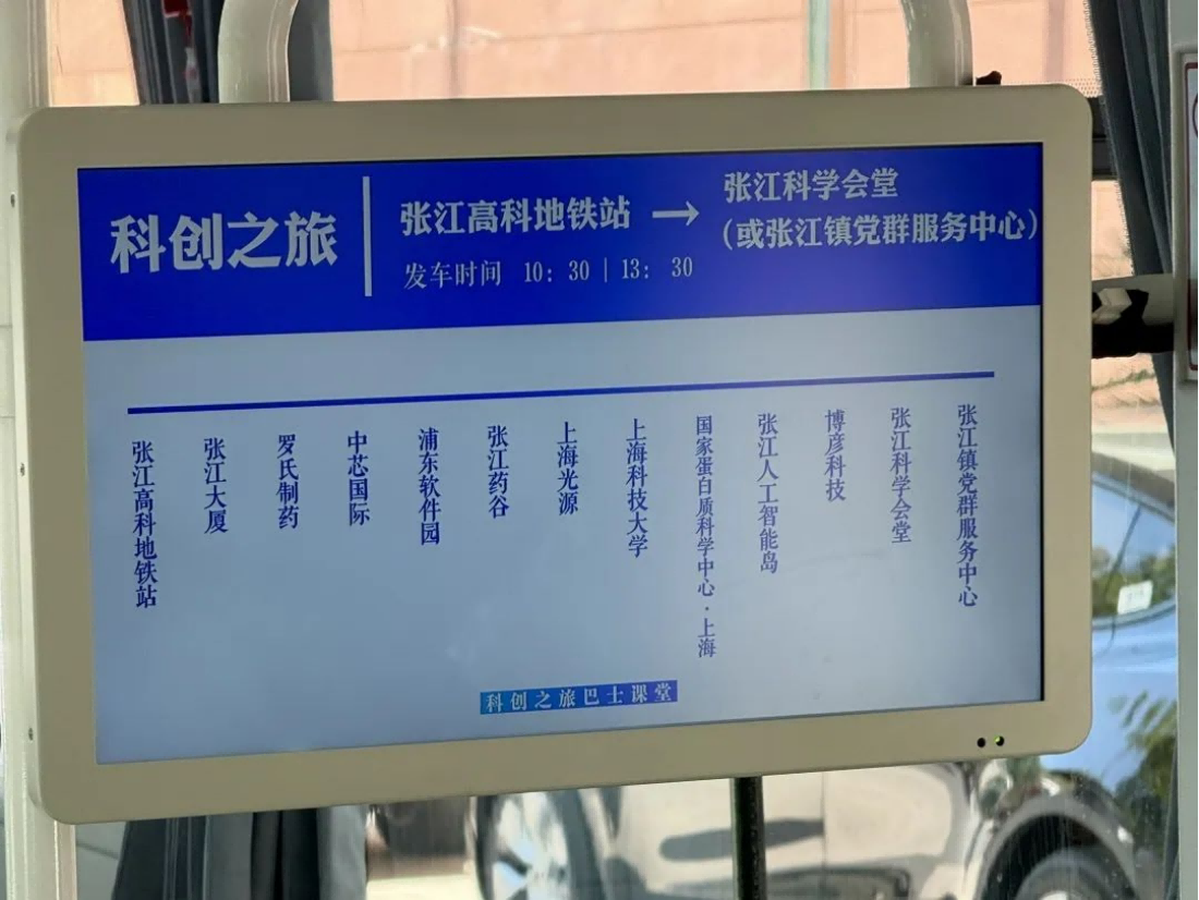 活动以“科创巴士”为载体,沿着张江核心地标展开,途经张江人工智能岛、罗氏制药、中芯国际、张江药谷等地,通过讲解与互动,党员们深入了解了张江在生物医药、人工智能、集成电路等领域的突破性成果。途中,讲解者结合建筑背后的故事,生动诠释了科研工作者的创新精神与家国情怀。