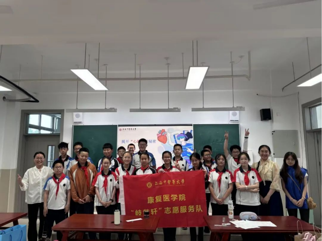 2025年5月22日下午,康复医学院“岐黄轩”志愿服务队秉持“健康中国”战略指引,以传播心脏健康理念、解码青少年认知盲区为出发点,在物理治疗(PT)教研室李培君老师与实习辅导员续嗣钰老师的带领下,走进上海中医药大学附属浦东实验中学,结合附中特色中医药社团活动,开展以“揭开心跳的秘密”为主题的护心启智科普志愿活动。