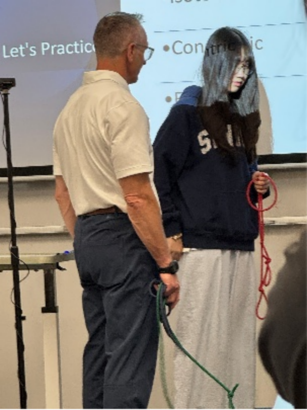 为帮助我们更直观地理解语言产生的生理机制,Dr. Kathryn 借助教学道具,视频生动地展示了人类发声、共鸣与构音的过程。她通过模型和图示演示了呼吸系统、声门、口腔与鼻腔等结构在语音产生中的协同作用,让我们直观感受到声音如何从肺部气流开始,经由声带震动,再经过口腔和鼻腔调节最终形成清晰的语言。这一环节将抽象的语言产生过程具象化,使复杂的生理机制变得易于理解、印象深刻。
