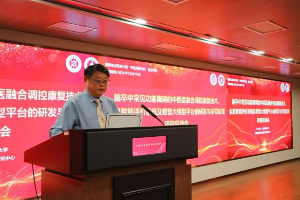 2025年9月12日下午,国家重点研发计划“中医药现代化”重点专项“脑卒中常见功能障碍的中西医融合调控康复技术、全息智能评价系统及数智大模型平台的研发与示范应用”启动会在上海中医药大学顺利召开。来自中医药、康复医学、人工智能、工程技术等领域的专家学者们齐聚一堂,共同论证项目实施方案,推动中医药现代化与智能康复的深度融合。