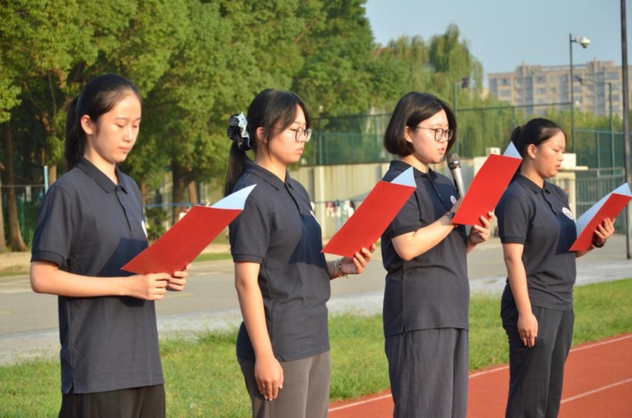 在升旗仪式后,徐优然、钱晨瑜、贾云帆、王嘉睿同学以“盛世华章,青春诵歌”为主题进行朗诵,号召全体同学:要立志、有理想;敢担当、敢拼搏;能吃苦、能奋斗;肯实干、善创新。不负盛世,不辱重任,以理想为帆、奋斗为桨,在拼搏中开启青春新程。