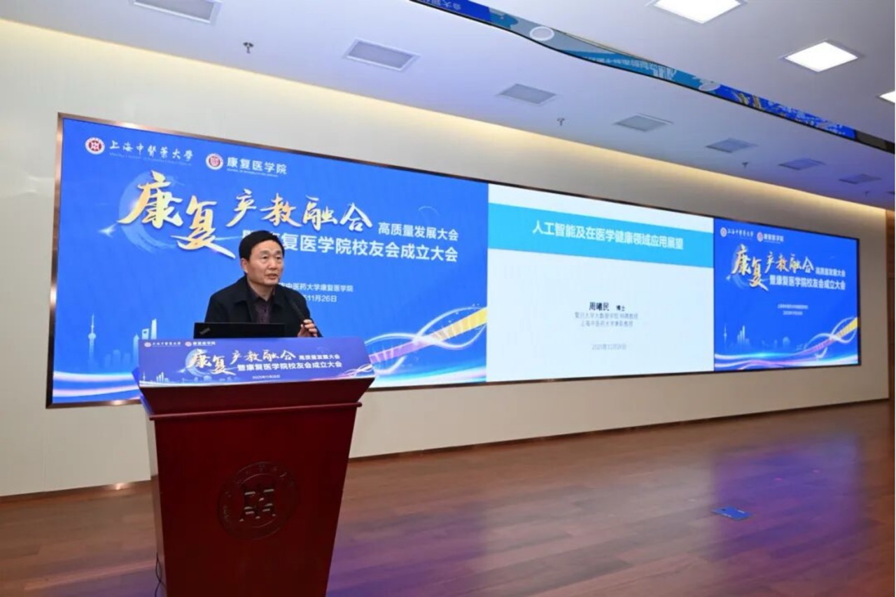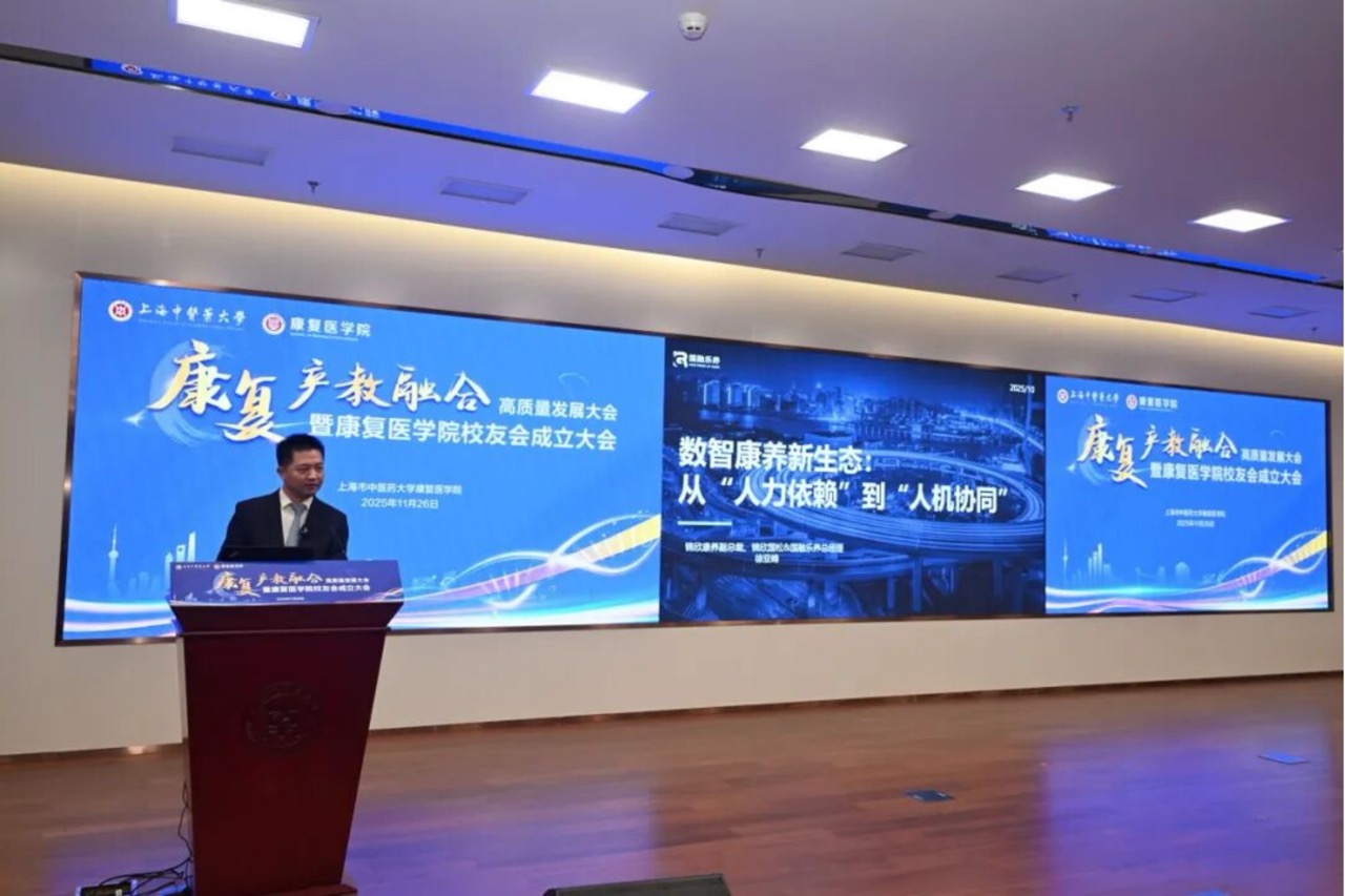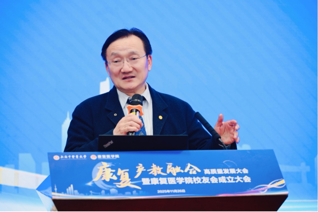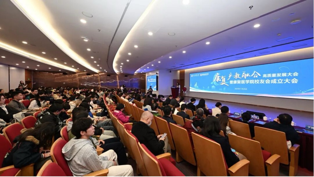 2025年11月26日,上海中医药大学康复产教融合高质量发展大会暨康复医学院校友会成立大会在我校举行。上海市人大教科文卫委员会主任委员、上海市现代康复产业学院院长徐建光,上海中医药大学副校长舒静、钟力炜,相关职能部门负责人,康复医学院领导班子,合作企业嘉宾,校友代表以及师生代表共计400余人参加本次盛会。大会由康复医学院党委副书记毕亚男主持。