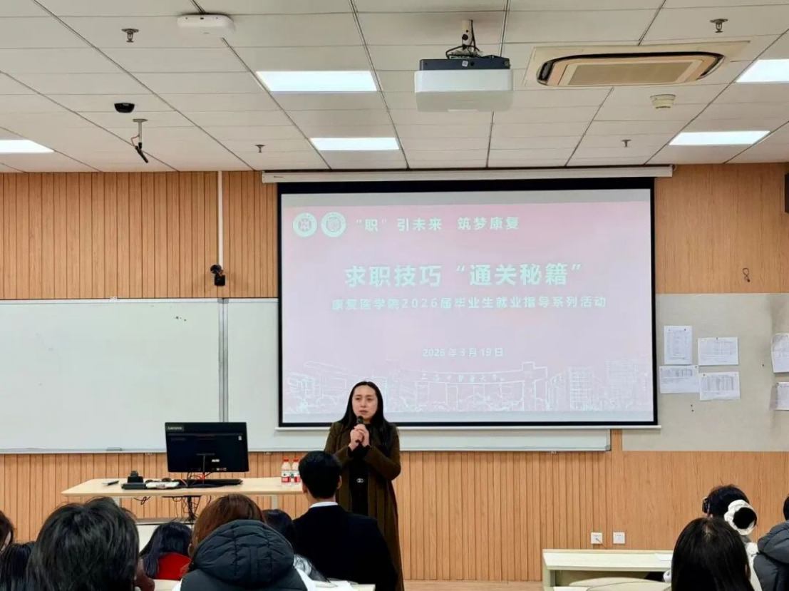 为抢抓应届毕业生求职关键窗口期,进一步提升学生求职竞争力,拓宽健康服务领域就业渠道,搭建用人单位与毕业生双向交流的优质平台,康复医学院于2026年3月19日成功开展“‘职’引未来 筑梦康复”毕业生就业指导系列活动。学院党委副书记毕亚男、毕业班辅导员孙雅静老师出席并主持活动,应届全体毕业生全程参与本次系列活动,在学思践悟中提升求职能力,在双向对接中探寻职业方向。